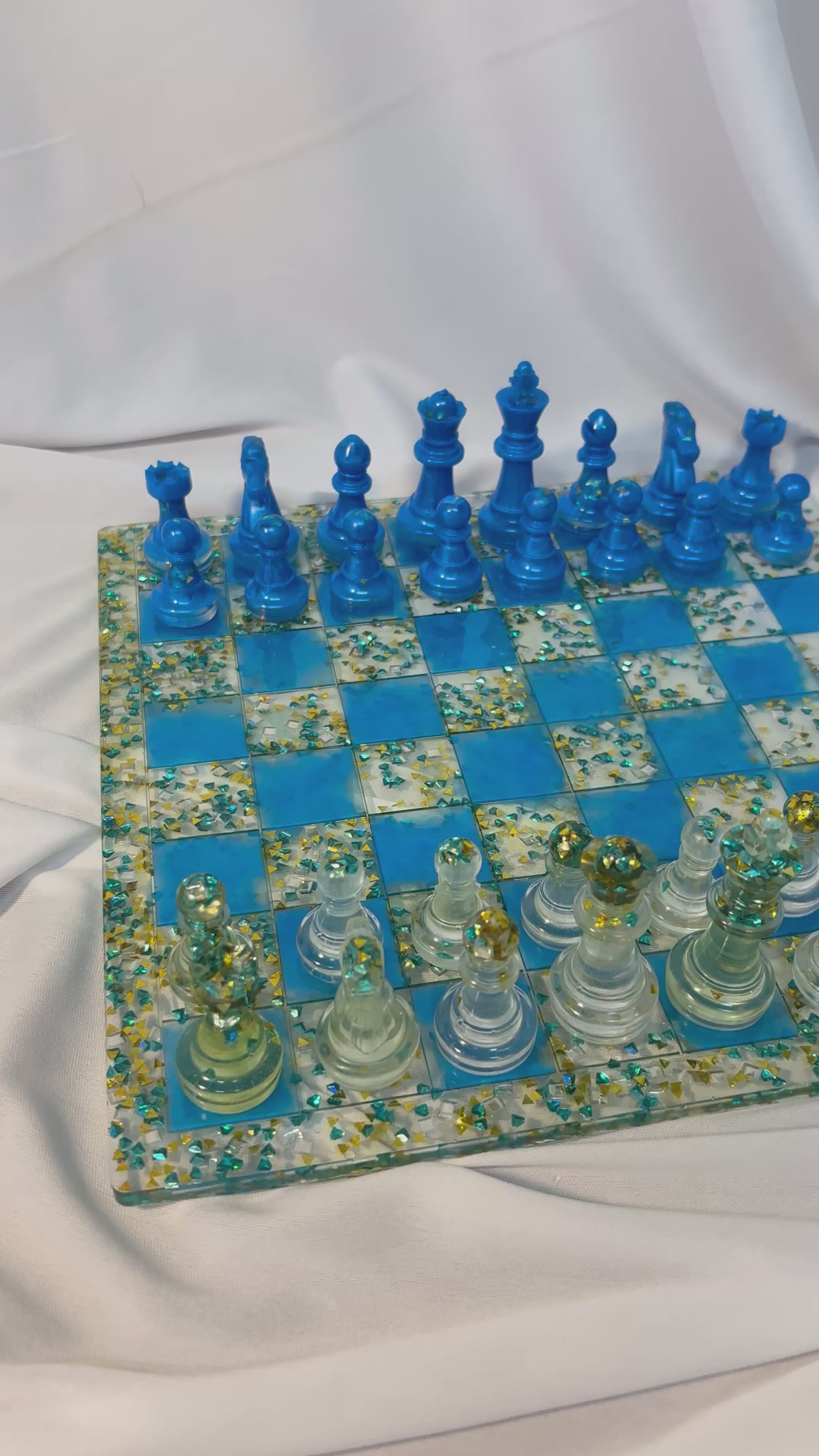 This handmade resin chess and checkers set is crafted with high-quality epoxy resin and can be fully customized to match your favorite colors, team shades, or aesthetic. Whether you’re designing a bold statement piece or a sleek, modern look, every board and piece is poured and finished by hand for a one-of-a-kind creation.